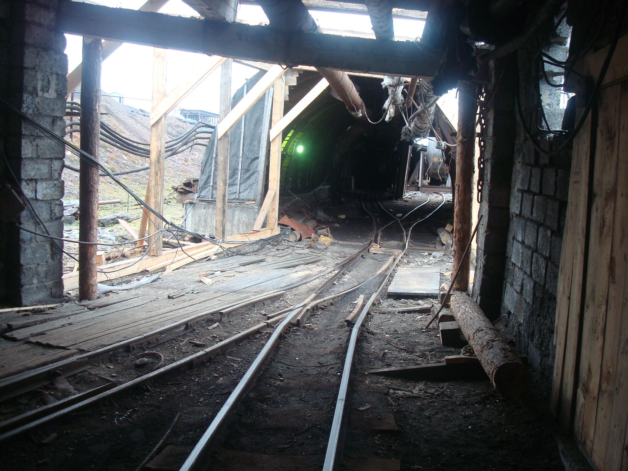 На вагонетке надпись «31 марта 1998 года выдана эта последняя тонна угля рудника Пирамида».