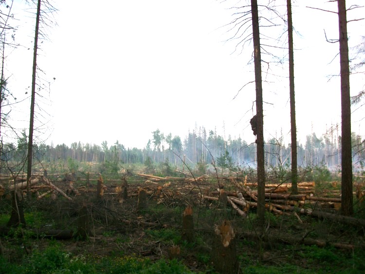 Работы по вырубке леса у автодороги Железнодорожная — Северный. Повреждённый короедом