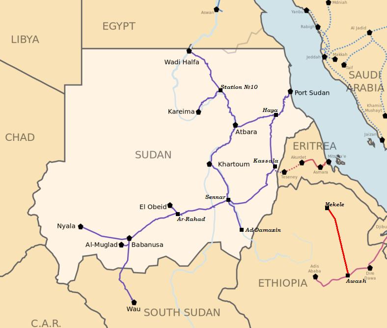 Все страны Северной Африки, кроме Судана (там только колея 1067 мм, почти не действует) и Туниса, где колея 1435 мм есть, но преобладает колея 1000 мм. Из-за большого числа абсурдных границ и враждебных отношений между странами единой сети в Северной Африке нет.