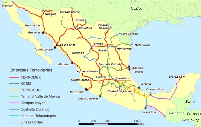 США, Канада и Мексика. Условно можно добавить соседнюю Кубу с изолированной и крупной железнодорожной сетью.