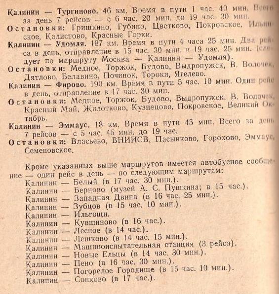 РАСПИСАНИЕ АВТОБУСНЫХ СООБЩЕНИЙ ДЛЯ ВСЕХ НАПРАВЛЕНИЙ КАЛИНИНСКОЙ ОБЛАСТИ НА 1977 ГОД