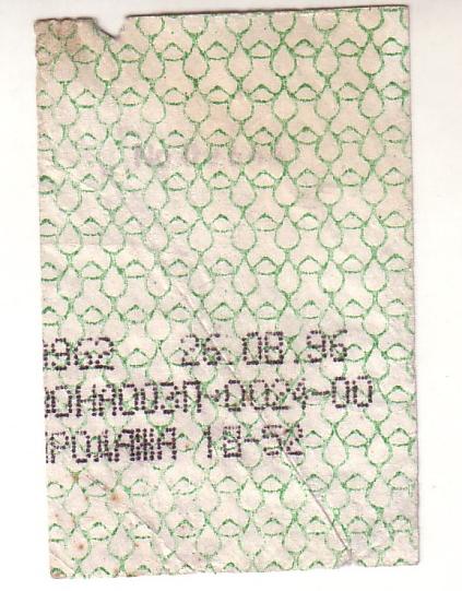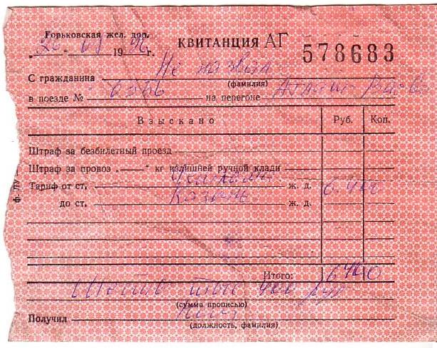 Квитанция, выданная в электропоезде Свердловск — Нижний Тагил.