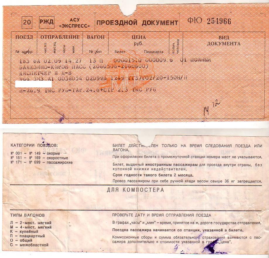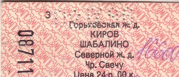 поезда Соликамск — Москва). Куплен в кассе на станции Шабалино.