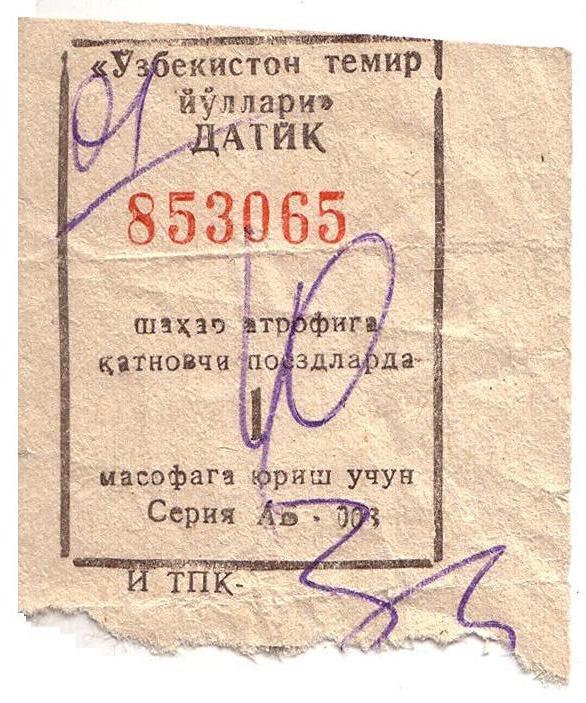 Такие билеты были в узбекских пригородных поездах.