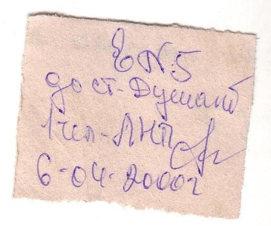 «Билетозаменитель» для проезда от Верхнего Баскунчака до Волгограда. Был выдан начальником поезда