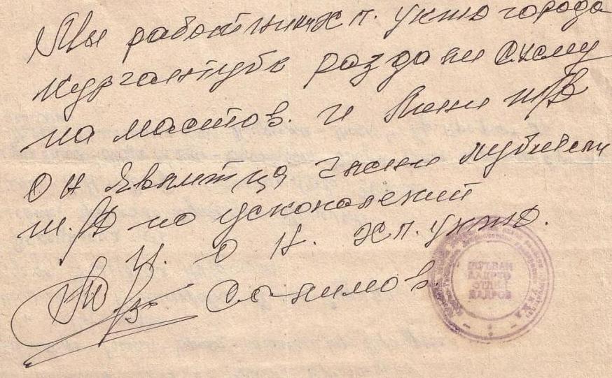 Справка, написанная сотрудниками узкоколейной железной дороги в Курган-Тюбе
