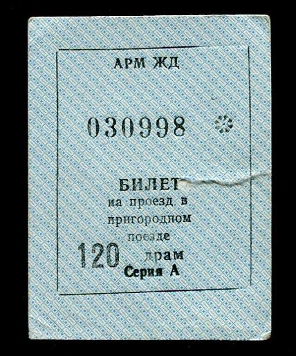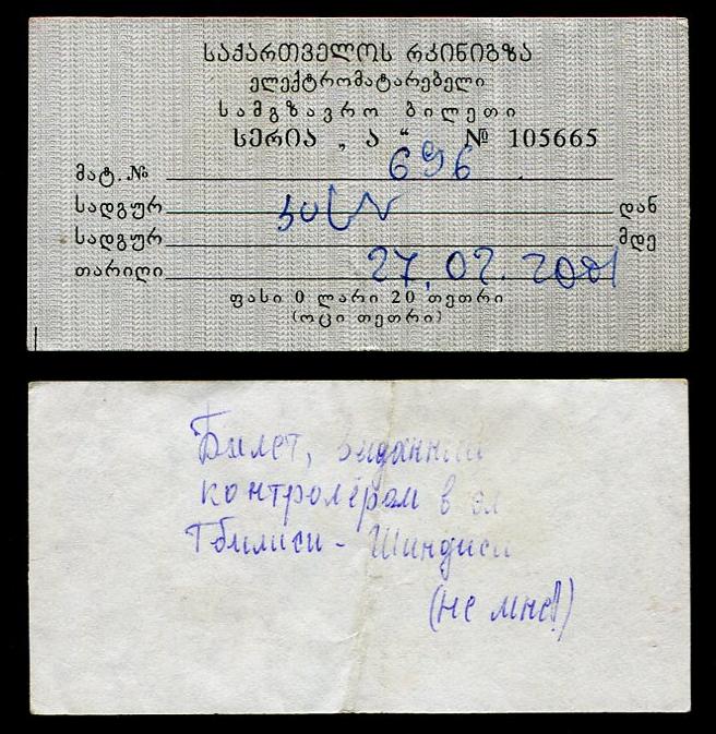 Билет из грузинского электропоезда Тбилиси - Никози. Куплен не мной.