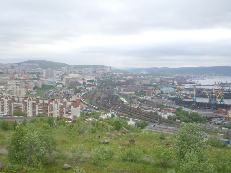 Мурманск. Вид сверху на станцию и Кольский залив. Время 16:51.