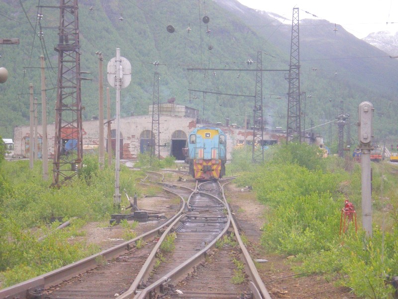 Расвумчоррский рудник. Электровоз К10 на разминовке вблизи посадочной площадки.