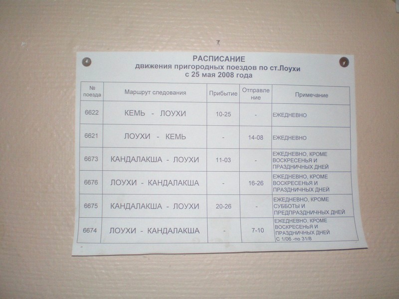 Расписание. Пригородных поездов пока ещё много (потом будут единицы в неделю). Но мне нужно совершить автостопный рывок.