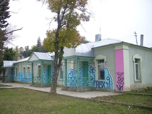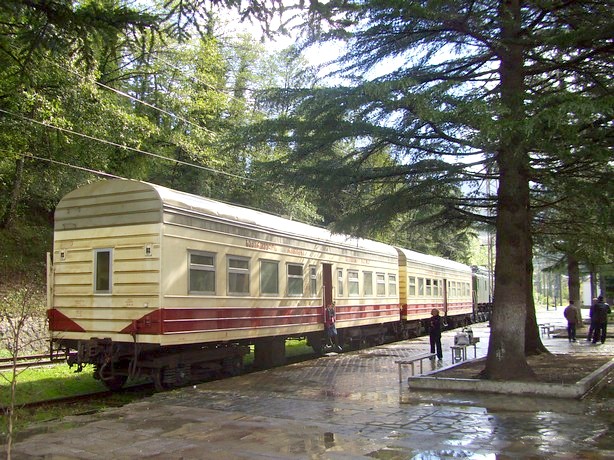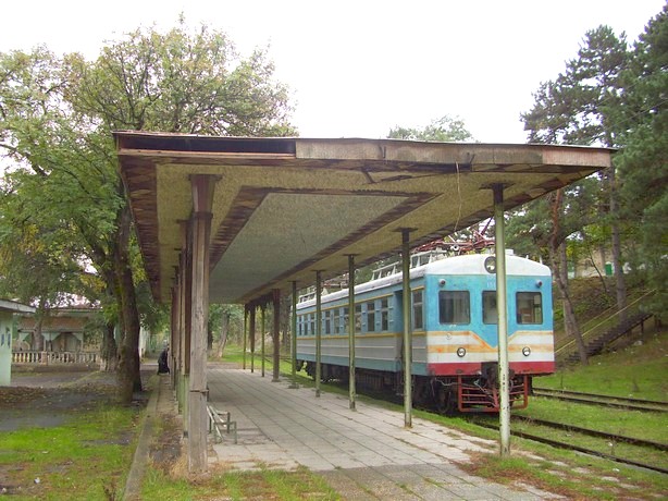 На следующий день кратковременно осматриваю при свете станцию Сачхере, где хорошо сохранилось двухэтажное здание вокзала 1904 года постройки. Всего на двух попутных машинах (напрямую от Сачхере до Зестафони и, что особенно удивительно, от Зестафони до Боржоми) добираюсь до начальной точки узкоколейной железной дороги Боржоми — Бакуриани.