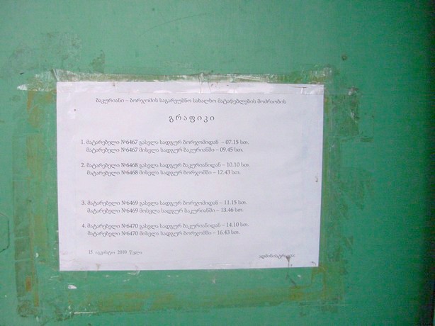 Расписание движения поездов, вывешенное на станции Бакуриани.