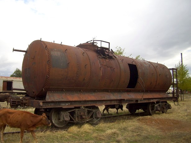 Старая цистерна широкой колеи на Горийском шпалопропиточном заводе.