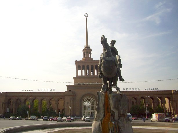 Из аэропорта — на дешёвой «маршрутке» (сильно изношенная «ГАЗель», как и почти все «маршрутки» в Армении) доезжаю до площади Дружбы, на которой находится станция Ереванского метрополитена «Дружба». Хорошо знакомая мне благодаря длительному пребыванию в Ереване в 2001 году площадь Дружбы оказалась «перегорожена» автомобильной эстакадой.
