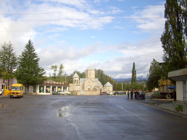Проездив линию Хашури — Сурами, обратно иду пешком. Удивило наличие среди малоэтажной застройки киоска с вывеской «ИНТЭРНЭТИ» — места общественного доступа в сеть.