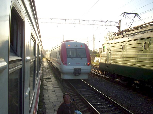Ранним утром выезжаю электропоездом Боржоми — Тбилиси. Данный пригородный маршрут — один из самых длинных в Грузии (150 километров). Проезд от Боржоми до Тбилиси стоит 2 лари (36 рублей), но до предыдущей перед тбилисским вокзалом станции — 1 лари, так как расстояние меньше 150 километров.