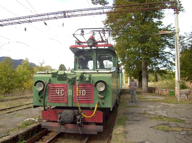 На станцию Боржоми попадаю в тот момент, когда поезд на Бакуриани уже должен был отправляться, но отправление задержалось примерно на двадцать минут из-за опоздания электрички Тбилиси — Боржоми. Машинисты и проводник поезда узкой колеи отнеслись ко мне очень хорошо, предлагали даже провезти в кабине (отказываюсь, так как на электровозах ЧС11 капот находится с двух сторон, сделать из кабины детальные фотографии дороги невозможно).