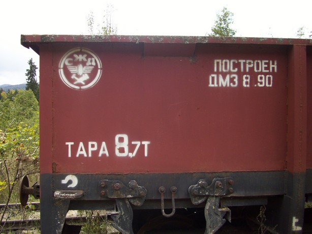 Вагон с логотипом Советских железных дорог на станции Сакочави.