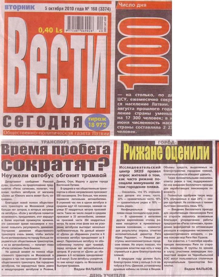 Газета «Вести Сегодня».