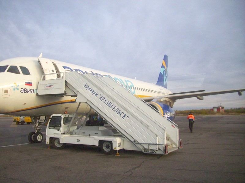 Аэропорт Архангельск-Талаги. Самолёт, прибывший из Москвы-Шереметьево.