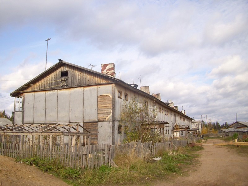 Двухэтажный жилой барак в посёлке Шангас.