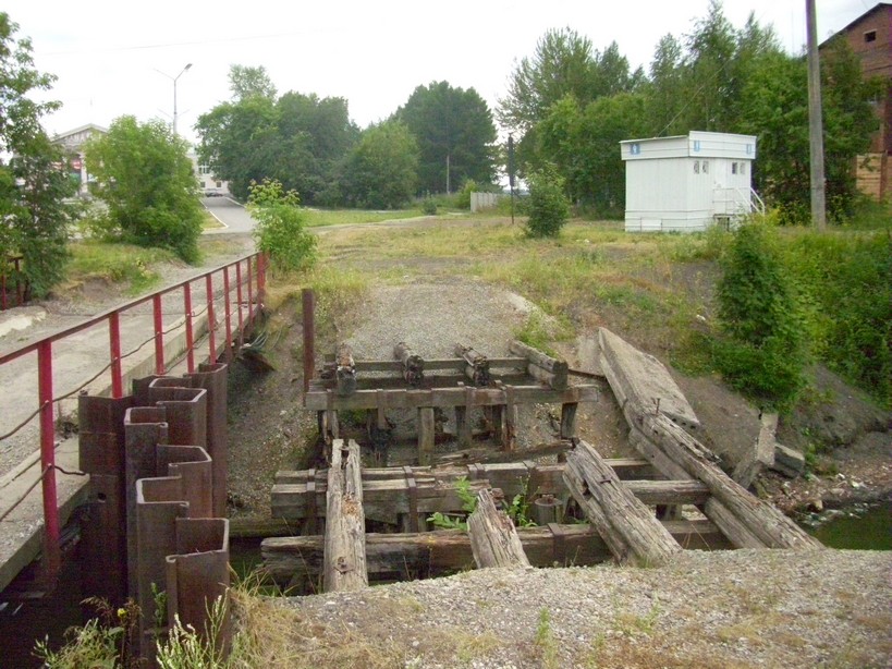 Мост через реку Травянку (между Лысьвенским и Травянским прудами) на разобранной линии. Вид в южном направлении.