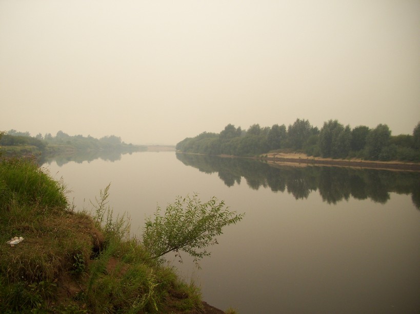 Река Клязьма у города Вязники. Местность задымлена, видимость минимальная...