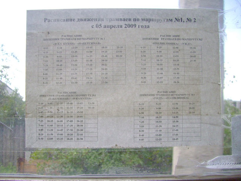 Расписание движения поездов Краснотурьинского трамвая. Расписание вывешено в каждом вагоне и на каждой остановке.