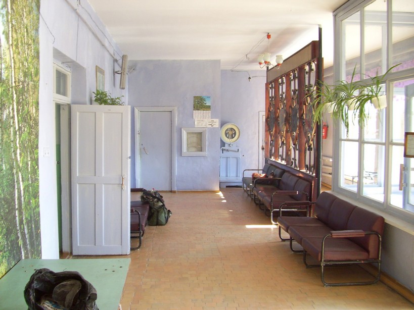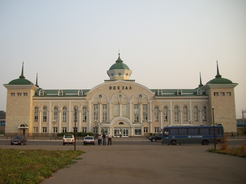 Я ожидал, что здесь будет нечто грандиозное, едва ли не как в Набережных Челнах или Тольятти. На самом деле: билетных касс и зала ожидания нет. Большая часть примитивного здания превращена в авторемонтную мастерскую.