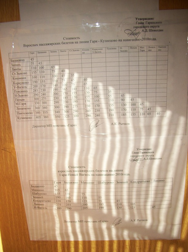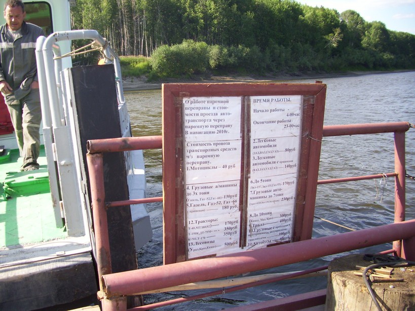Стоимость проезда на «Пелыме». Объявление сфотографировано на борту катера.