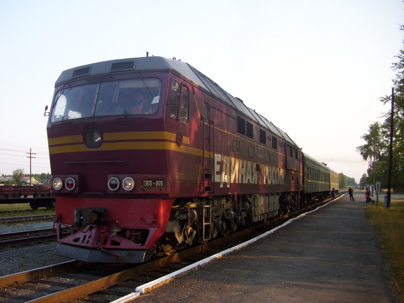 Пригородный поезд сообщением Предтурье — Алапаевск на станции Предтурье. Тепловоз ТЭП70-0479,