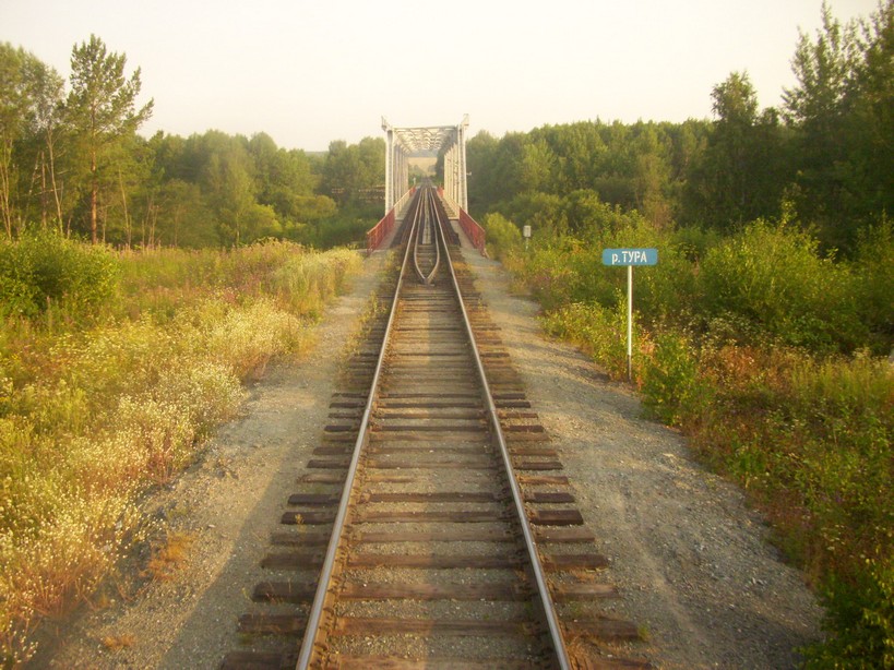 Впереди — мост через реку Туру. Вид в северном направлении.