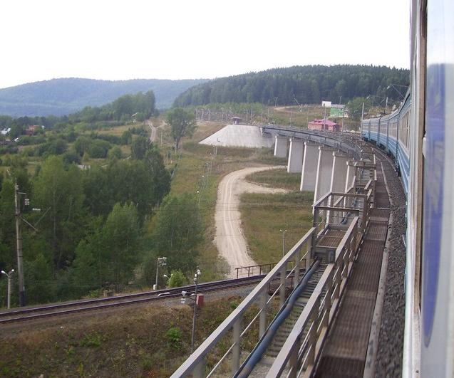 Двухуровневая развязка западнее Красноуфимска. Вид из электропоезда сообщением