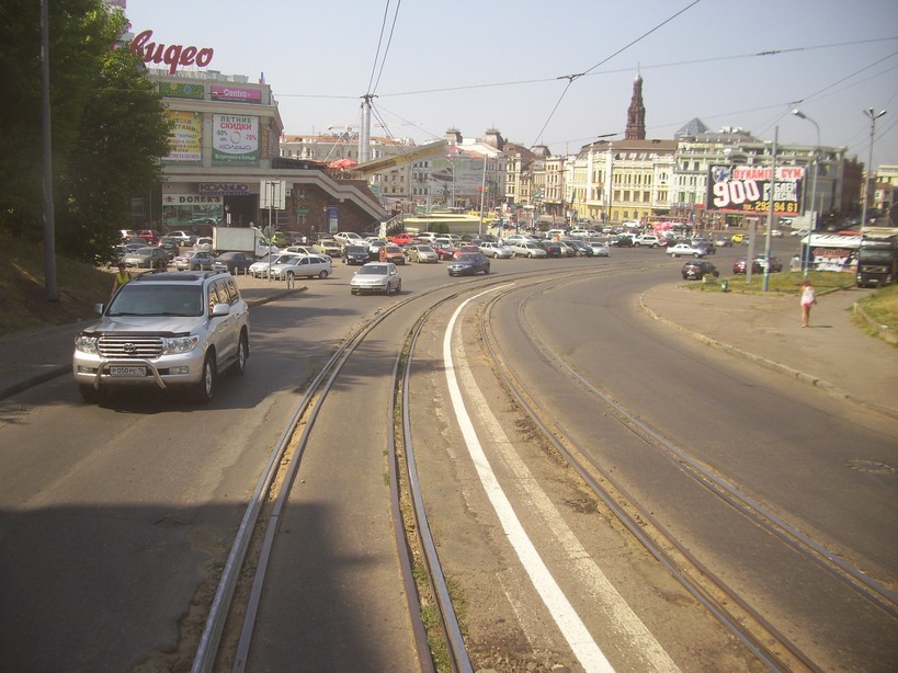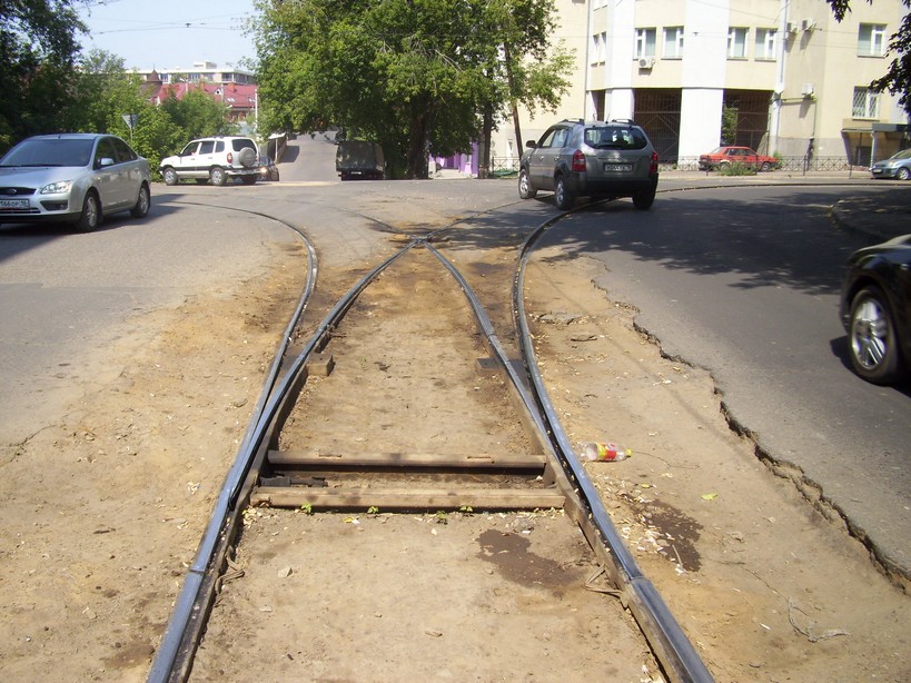 Последняя трамвайная линия, сохранившаяся в центре города Казани. Вид с улицы Бутлерова