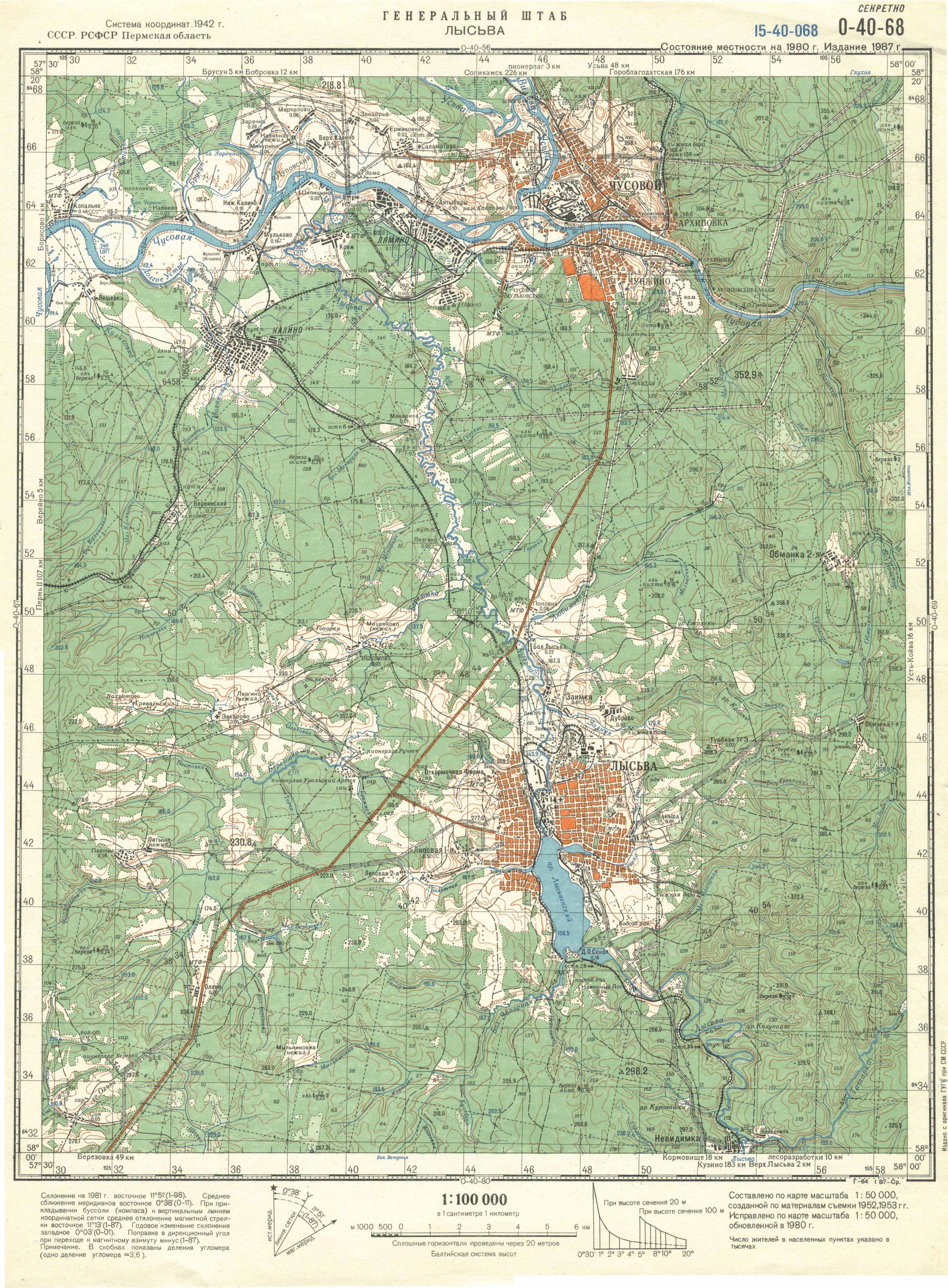 Карт масштаба 1:100 000, изданная в 1987 году (Источник: http://download.maps.vlasenko.net/smtm100/o-40-068.jpg)
