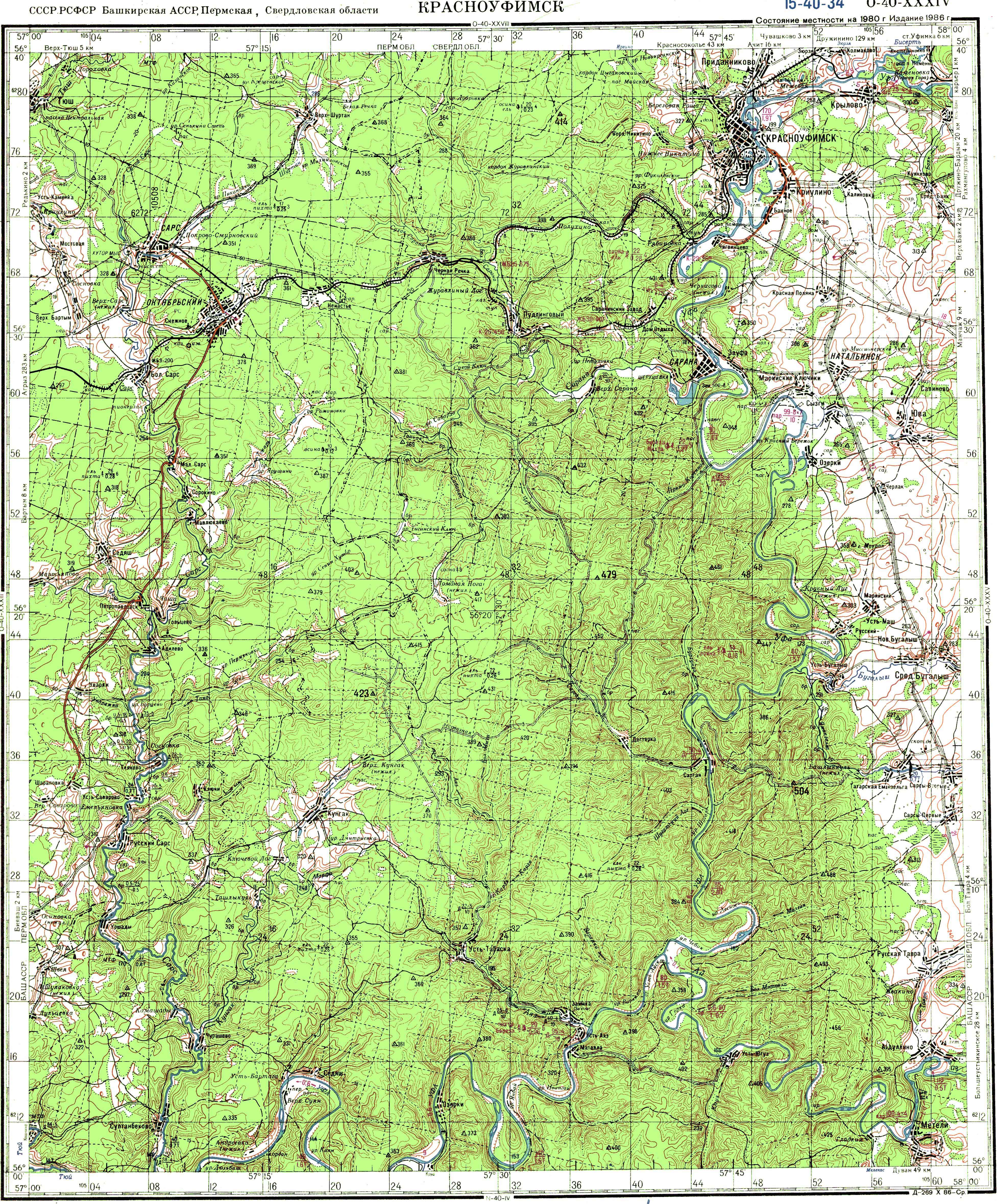Карта масштаба 1:200 000, изданная в 1986 году (Источник: http://download.maps.vlasenko.net/smtm200/o-40-34.jpg)