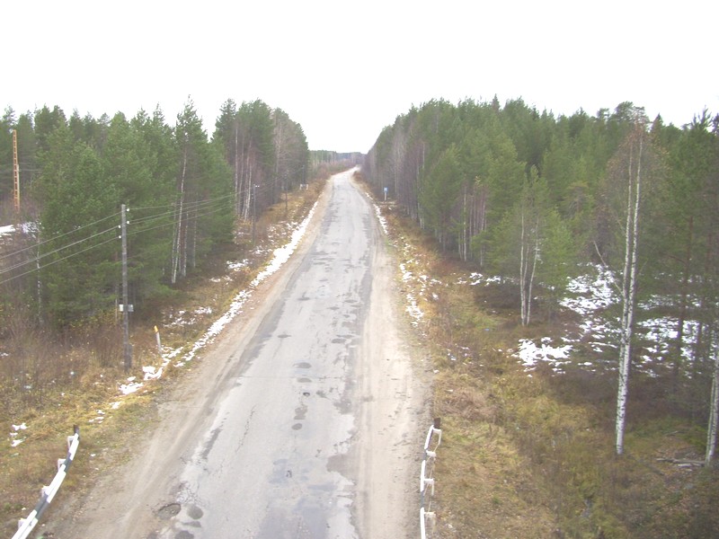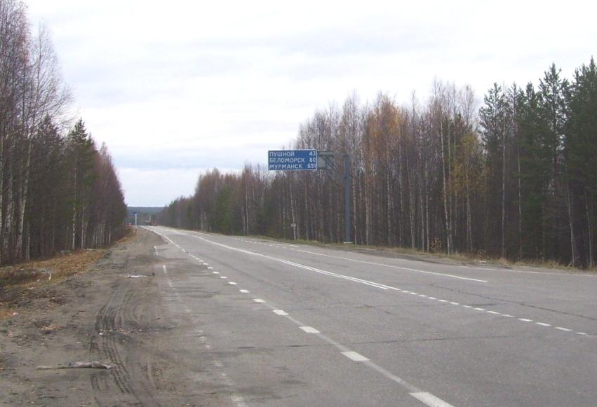 «Мурманская трасса» у развилки на Костомукшу. Вид в сторону Мурманска. Время 13:09.