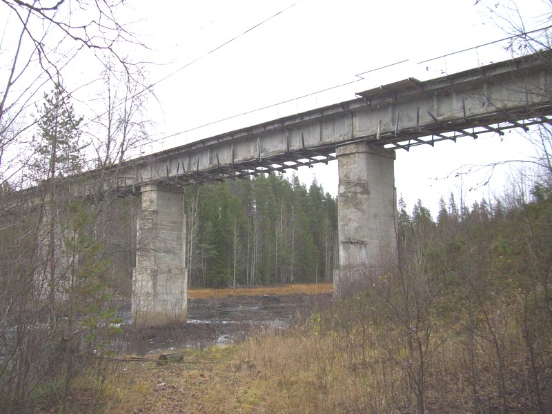 Пограничник Кудрявцев согласился доставить меня на автомобиле в Юшкозеро. Никак иначе нельзя: в случае движения пешком я не успею к отправлению поезда. По пути он подвёз к железнодорожному мосту через реку Чирка-Кемь.