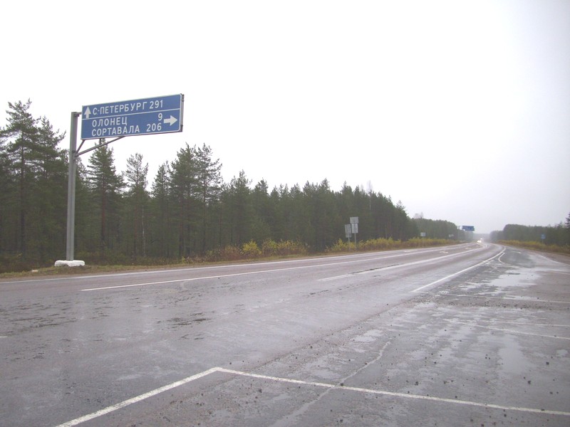 От круговой развилки у Петрозаводска предстоит добраться автостопом как минимум до Волховстроя.