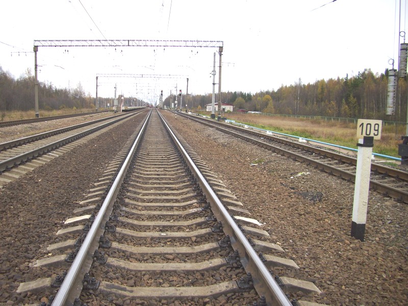 Выхожу у путепровода через Петербурго-Московскую железную дорогу в Чудовском районе Новгородской области. Двигаюсь по путям к ближайшей станции Торфяное.