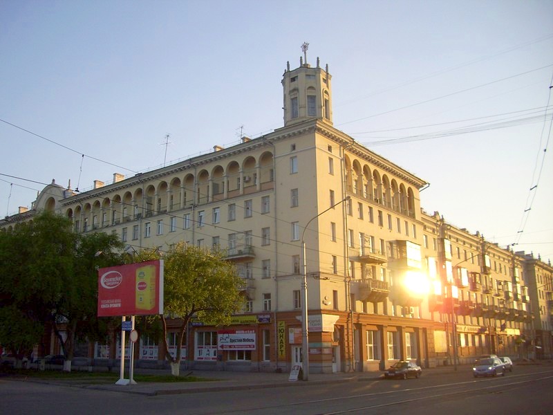 Тюмень. Необычный жилой дом в посёлке аэропорта Рощино. Время 20:33.