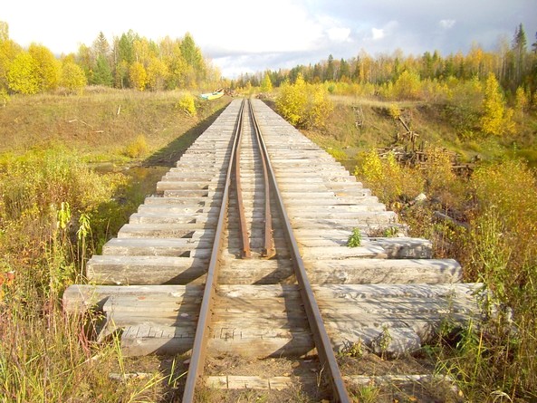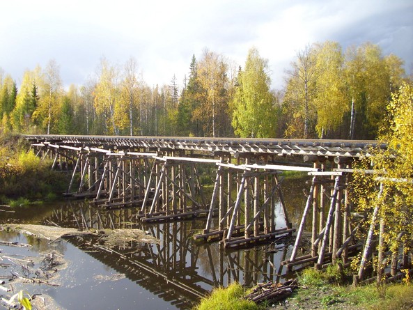 Мост через реку Мандра на «Боровой ветке». Устои — деревянные,