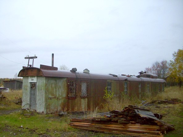 Недолгий осмотр бывшего начального пункта узкоколейной железной дороги, которая действовала примерно до середины 1990-х годов. Осталось несколько кабин тепловозов, снятые с тележек вагоны.