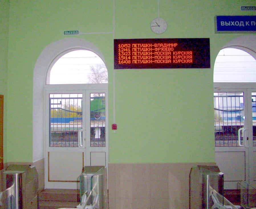 Вокзал на станции Петушки после завершения реконструкции в 2011 году. Время 10:44.