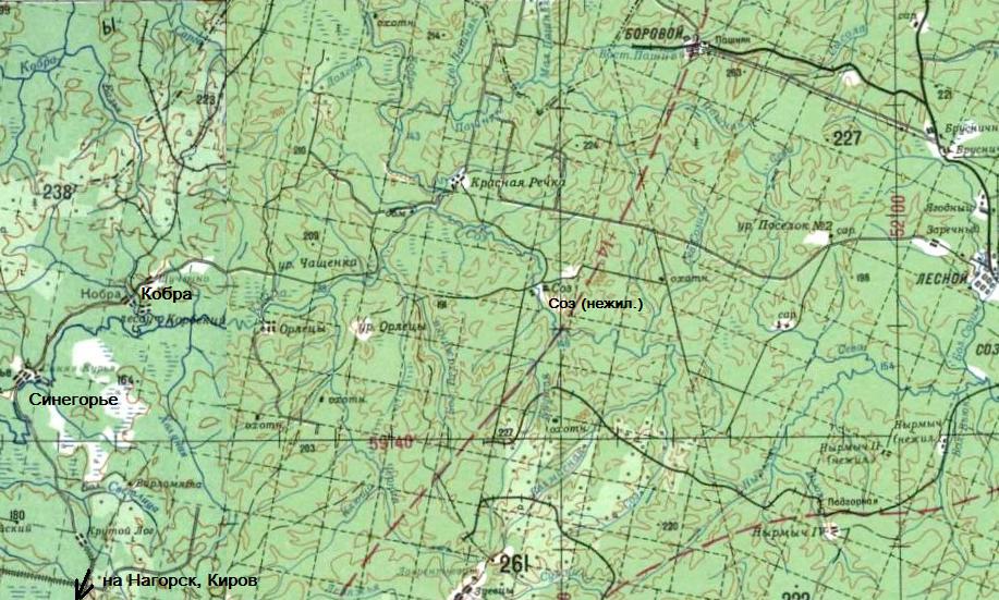 Даже на сравнительно новой топографической карте Кировской области, 1997 года издания, присутствует огромное число деревень, которых физически уже нет. Север Кировской области — катастрофически вымирающее место. На протяжении столетий эта земля была густо заселена. На карте конца XIX века можно видеть множество сёл и деревень, на карте 1990-х годов в том же самом месте нет ничего, кроме безжизненного леса. Но и те деревни, что в 1990-е годы ещё были — исчезают.