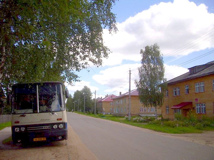 В центре села стоял старый «Икарус» маршрута Кострома — Боговарово, который ползёт по маршруту 12 с половиной часов. На автомобиле должно быть вдвое быстрее, это при средней поездке, даже если не гнать сверх меры! При этом автобус стоит лишь ненамного дешевле самолёта. Автобусный тариф — 2 рубля за километр.