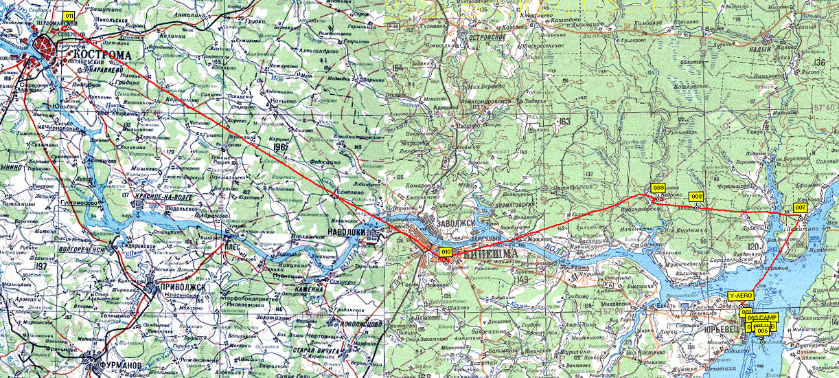 Ещё одна одна короткая посадка — в Нежитино, территория Костромской области. Короткий перелёт над многокилометровыми просторами «Горьковского моря», и «конечная станция» — Юрьевец. Это Ивановская область. Здесь — единственный на маршруте, кроме Костромы, аэродром, имеющий действующее здание.