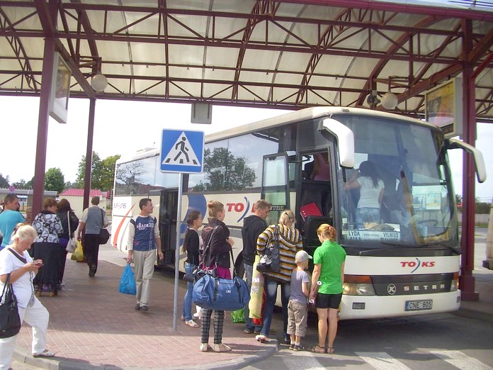 Я был готов к тому, что межгосударственный автобус будет стоить дорого, как минимум 10 евро в эквиваленте. И был потрясён, когда в справочной автовокзала назвали цену: «тридцать четыре тысячи» (составляет 130 RUR, 3 евро). Это почти вдвое дешевле автобусного тарифа внутри Беларуси и втрое дешевле автобусного тарифа внутри Литвы! Стандартная ситуация является обратной: межгосударственный транспорт дороже внутреннего.