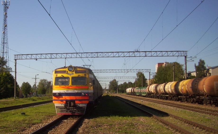 Электропоезд Рига — Елгава на станции Олайне. Вид в южном направлении.