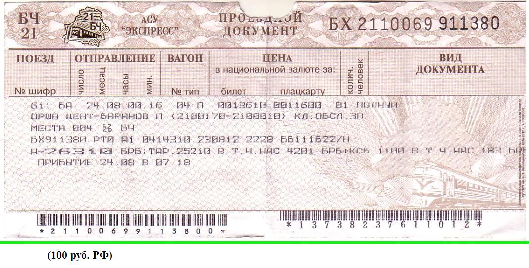 Билет Барановичи-Полесские — Лида.